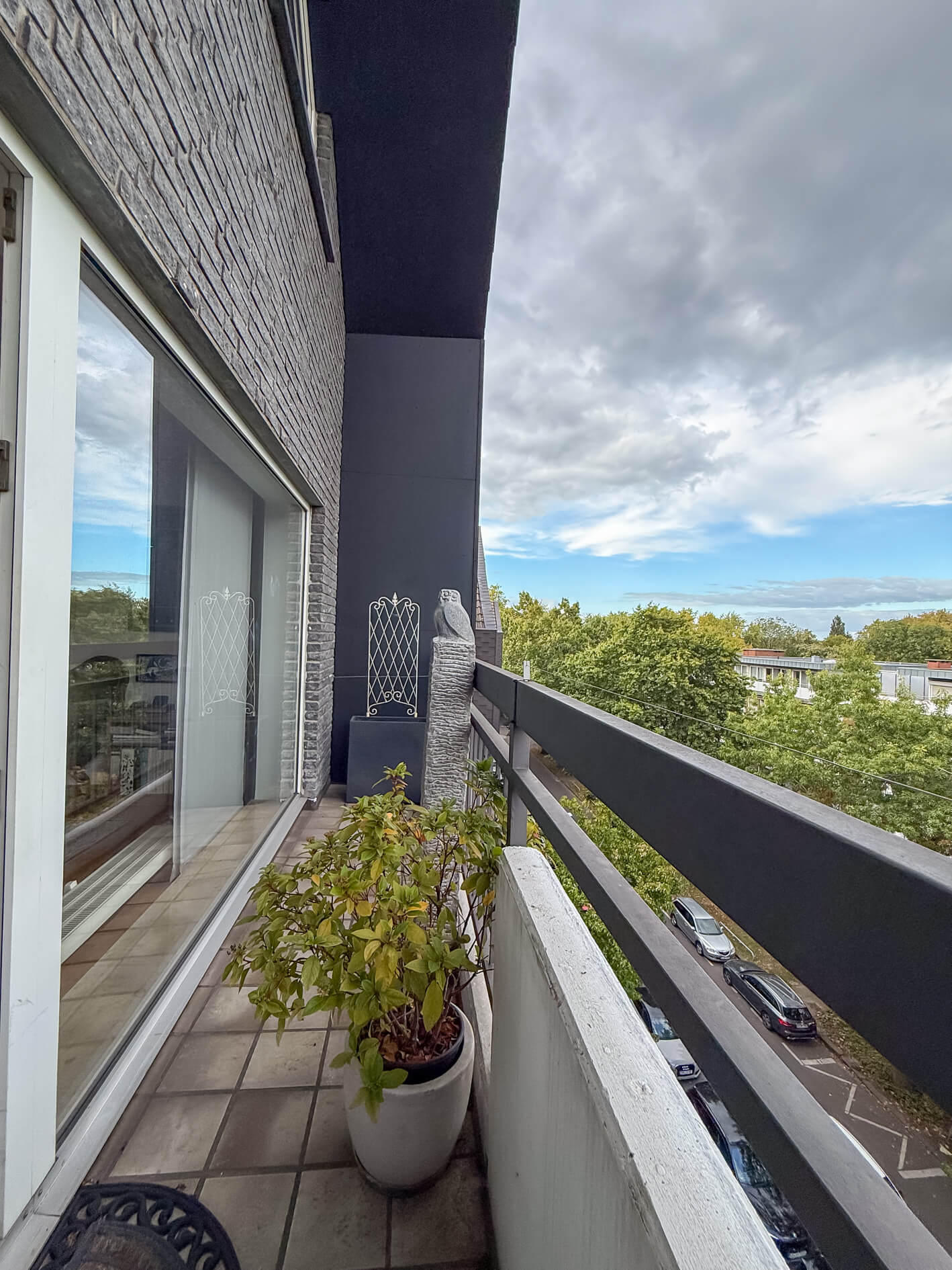 Lichtdurchflutete Maisonette-Wohnung mit zwei Balkonen und Außenkamin in gepflegtem Mehrfamilienhaus in Krefeld