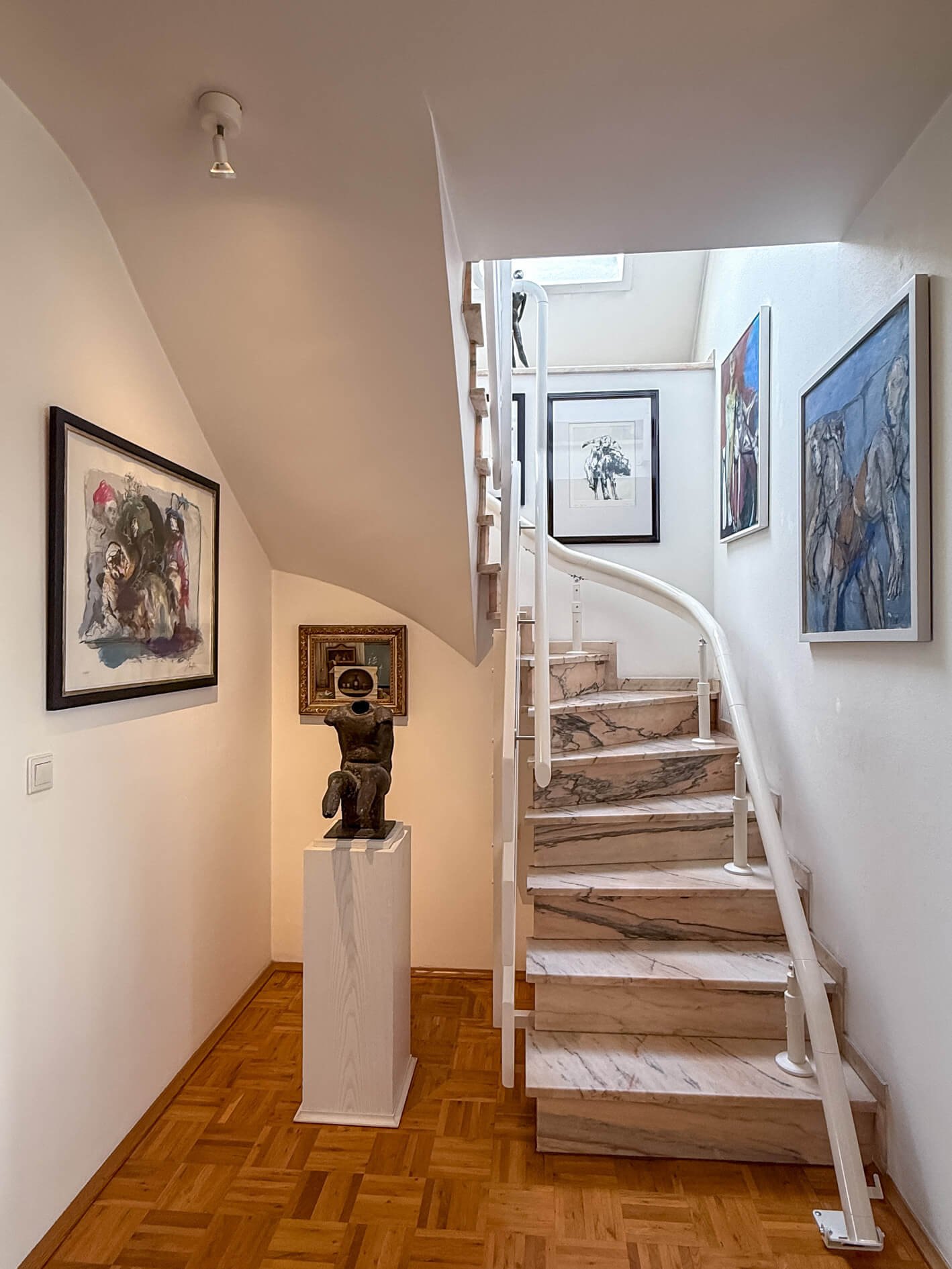 - Gepflegtes Treppenhaus mit Edelstahl-Aufzug